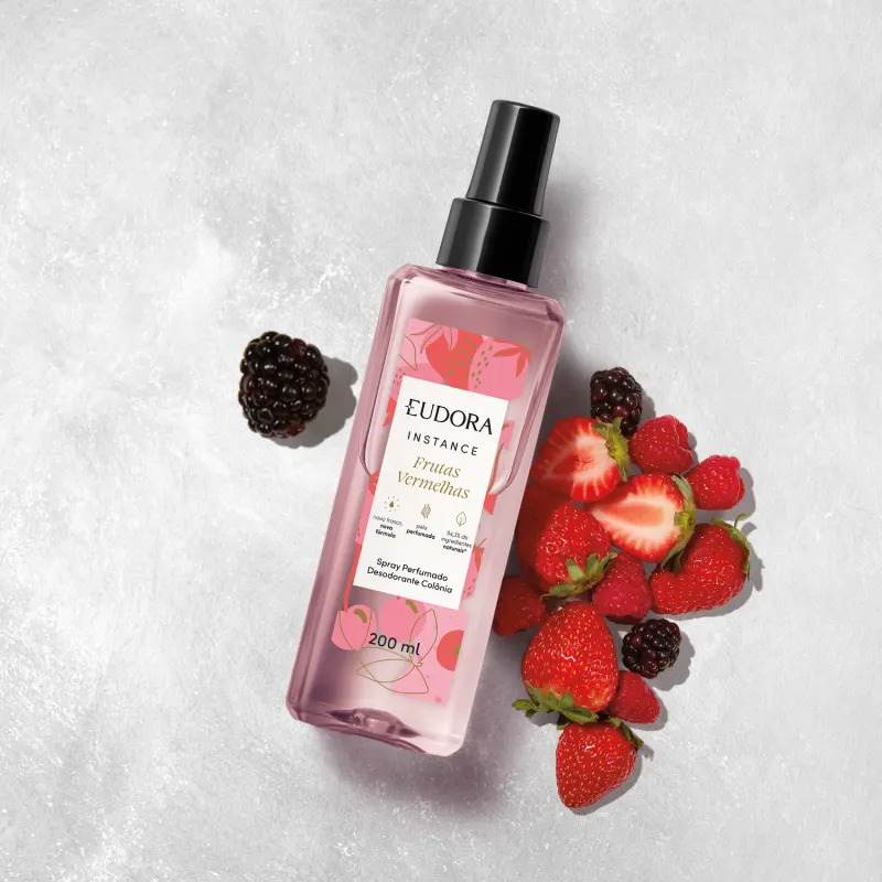 Para as amantes de aromas frutais, o Spray Perfumado Desodorante Colônia Instance Frutas Vermelhas da Eudora, oferecido por R$ 64,99 (200ml), pode ser o presente ideal.