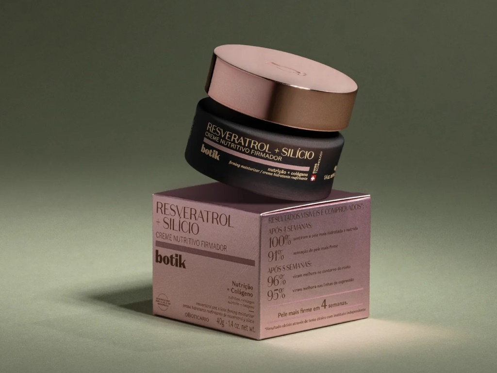 Pensado especialmente para mulheres no climatério e menopausa, o creme da linha Botik do Boticário combina resveratrol e silício para ajudar na firmeza e na nutrição da pele.