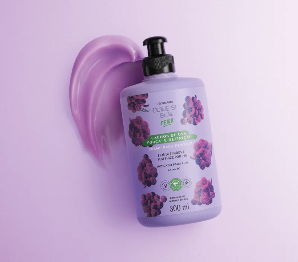 O Boticário lançou recentemente a linha Cuide-se Bem Feira Cachos de Uva, voltada para cabelos cacheados, ondulados e crespos.