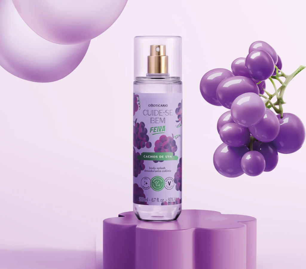 Diferente de muitas fragrâncias capilares adocicadas e artificiais, a linha Cachos de Uva do O Boticário, aposta em um cheiro que começa com notas frutadas lembrando bala de uva ou chiclete, mas evolui rapidamente para algo mais sofisticado.