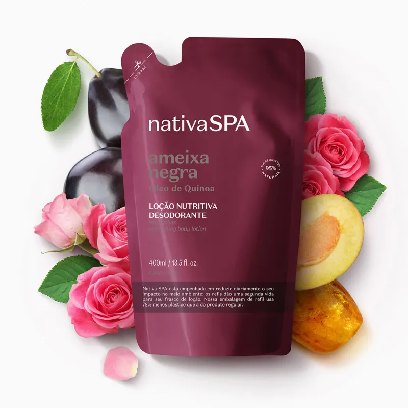 A economia com o respeito ao meio ambiente entram em cena com o Refil Loção Desodorante Hidratante Corporal Ameixa Negra, uma das fragrâncias mais populares da linha “Nativa Spa”.